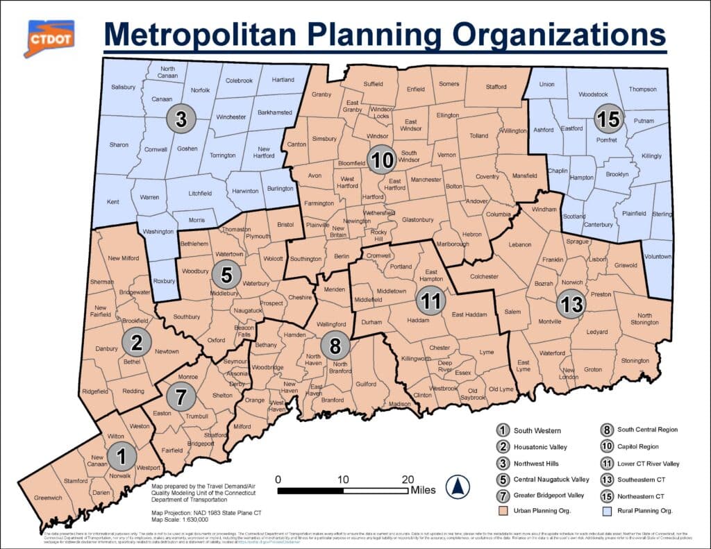 SCRCOG serves the member municipalities of the South Central Region as a state-designated Council of Governments (COG) and federally-designated Metropolitan Planning Organization (MPO). Read more about these roles in the following tabs.