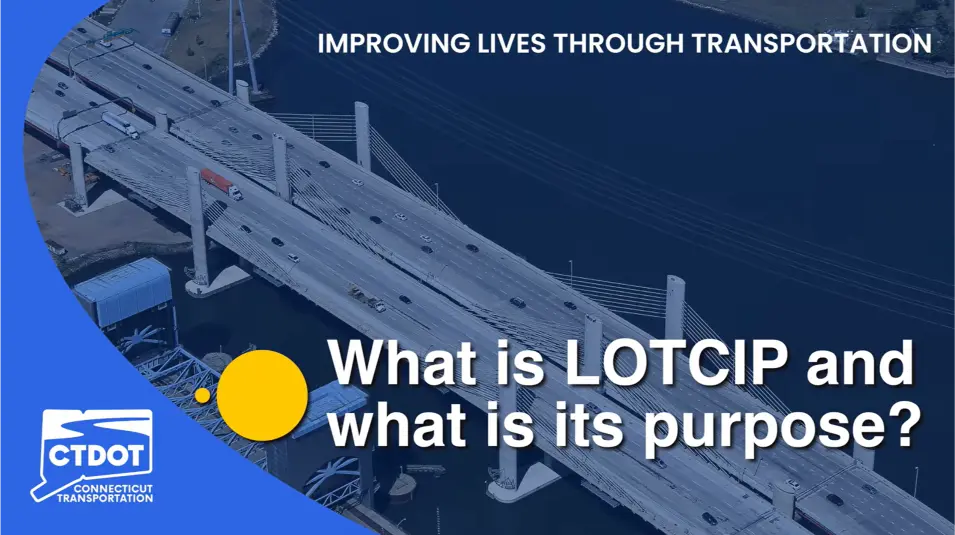 Section 74 of Public Act 13-239 authorized the Commissioner of Transportation to establish a Local Transportation Capital Improvement Program (LOTCIP). CTDOT established the program to provide municipalities with a funding source and to supplant federal funds offering opportunities for improved project delivery. This funding allows municipalities to perform needed capital infrastructure improvements with less burdensome requirements.